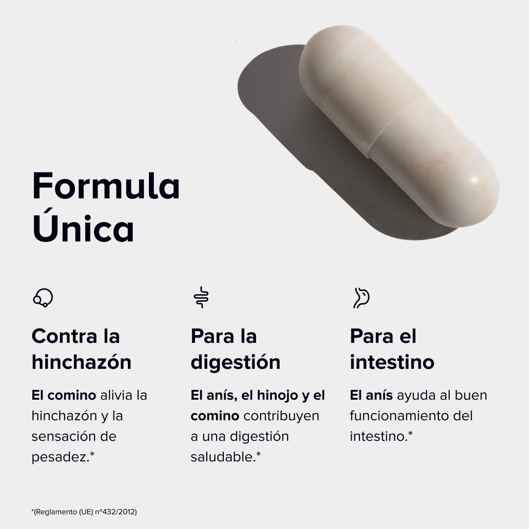 Con 7 hierbas y enzimas que ayudan a reducir hinchazón, gases y molestias digestivas.