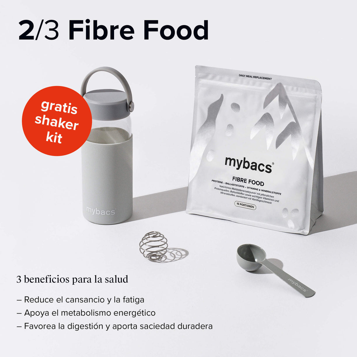 Fibre Food es un versátil batido sustitutivo de una comida que puede personalizarse para adaptarse a sus objetivos y necesidades individuales, tanto si busca una cura temporal como si desea sustituir o complementar una comida a largo plazo - nuestra equilibrada formulación le permite opciones de aplicación flexibles para adaptarse a sus necesidades y objetivos individuales. Sustituya 1-2 comidas al día según sus necesidades.