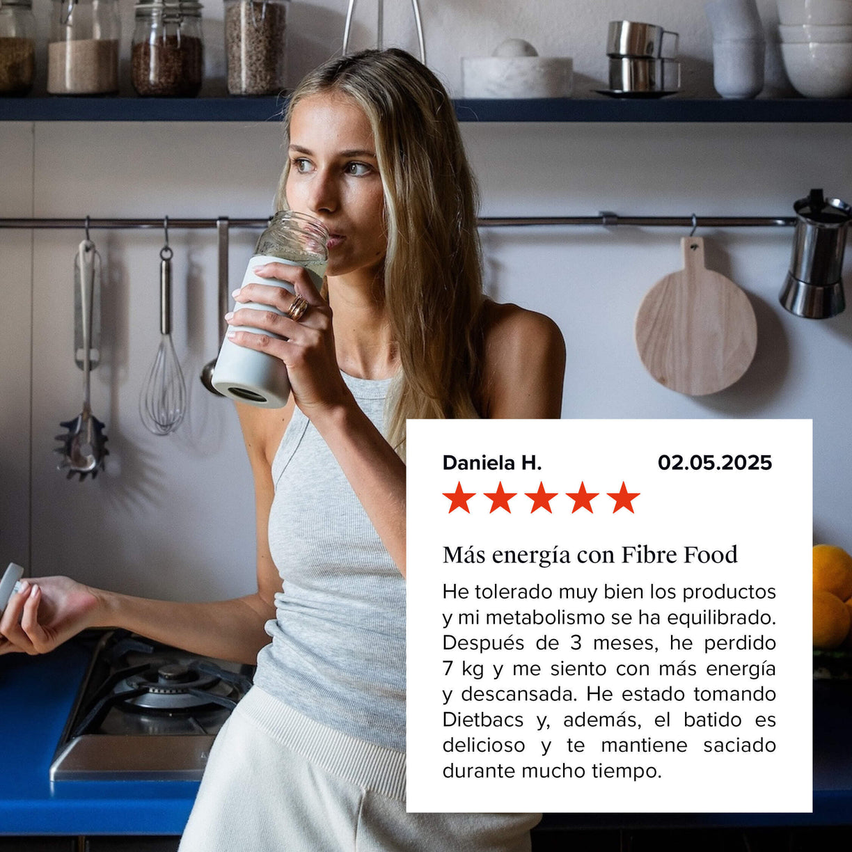 “He tolerado muy bien los productos y mi metabolismo se ha equilibrado. Después de 3 meses, he perdido 7 kg y me siento con más energía y descansada. He estado tomando Dietbacs y, además, el batido es delicioso y te mantiene saciado durante mucho tiempo.”