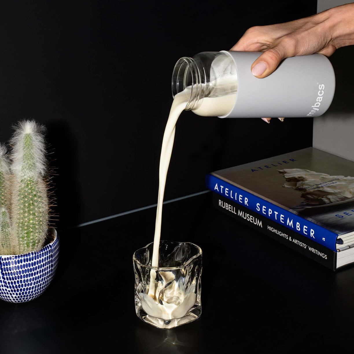 Añadir 500 ml de agua o leche y la bola agitadora