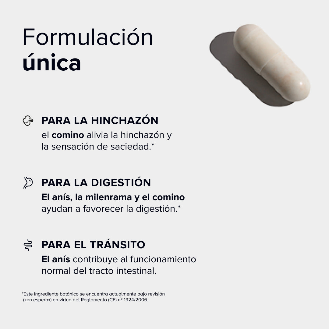 Con 7 hierbas y enzimas que ayudan a reducir hinchazón, gases y molestias digestivas.