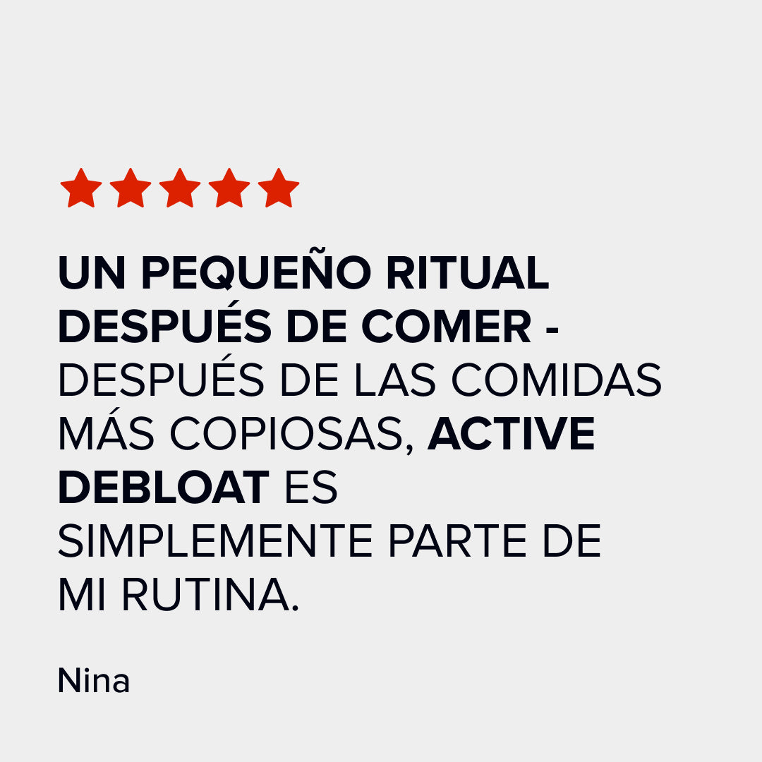 Active Debloat es perfecto para las personas que sufren indigestión o hinchazón. Este producto favorece un vientre plano y alivia los problemas digestivos - ideal para cualquiera que desee mejorar su salud intestinal y reducir la hinchazón de forma natural.