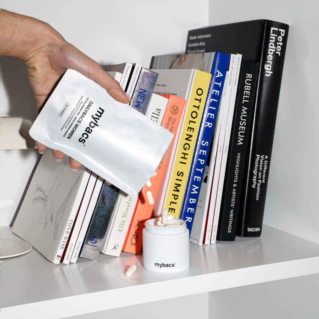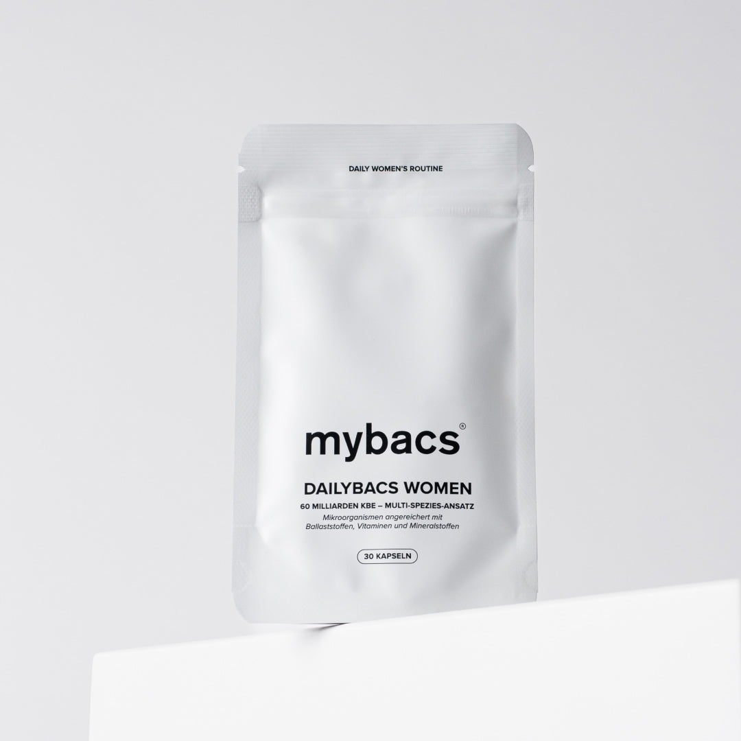 Dailybacs® Women combina 11 cepas bacterianas clínicamente probadas con fibra, minerales y vitaminas.
