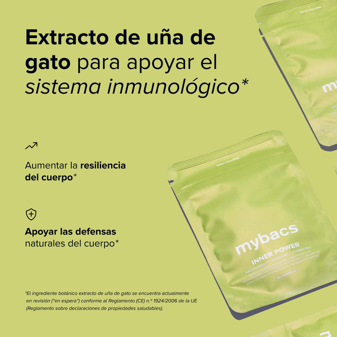 Inner Power es ideal para quienes desean fortalecer su sistema inmunológico de manera efectiva. En particular, Inner Power+ puede utilizarse tanto para la prevención como para la intervención, mejorando las defensas naturales y aumentando la vitalidad general. Inner Power+ contiene una mezcla de superalimentos naturales, como extracto de uña de gato y extracto de semilla de uva.